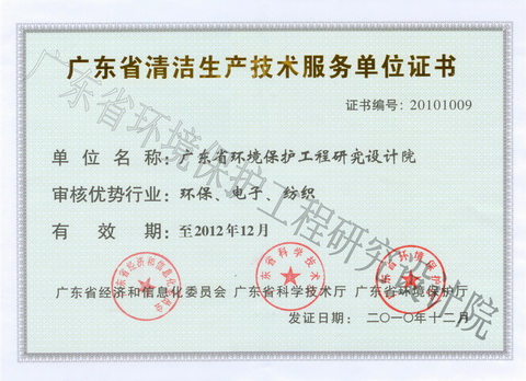 广东省清洁生产技术服务单位证书