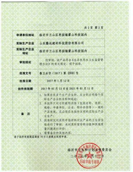 涉水卫生许可证
