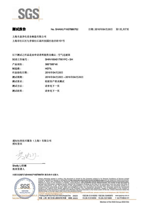 上海禾益净化设备制造有限公司过滤棉阻燃SGS报告
