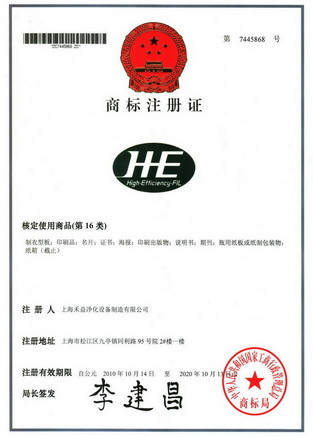 上海禾益净化设备制造有限公司商标注册证