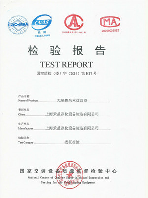 无隔板高效过滤器检验报告